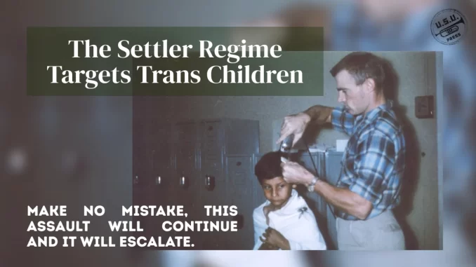 What is the psychological impact on the children for whom their agency over their own bodies is violently ripped away from them, whose bodies are disfigured against their will, and their identities and very humanity denied them by friends, family, and society? These mechanisms of social abuse lead many trans people to attempt suicide. Rather than treat us as victims of social violence, reactionaries proudly tout “41%”, referencing the trans suicide attempt rate. It is of course nonsense to assert that being trans makes us suicidal, rather than the issue of the above denial of our fundamental humanity, and denial of our access to life-saving medical care, and denial to community, love, support, and respect, that produces suicidal individuals. It’s social murder. But that is naturally the aim of these policies. The cruelty is the point. They want us dead. This is a deliberate policy of genocide, which we have written about before (Transition or Death, Total War and Trans Liberation, Death Before Detransition: In Solidarity with Jaia Cruz). This assertion is in no sense hyperbole or exaggeration. Trans people are under genocidal assault by the settler state.