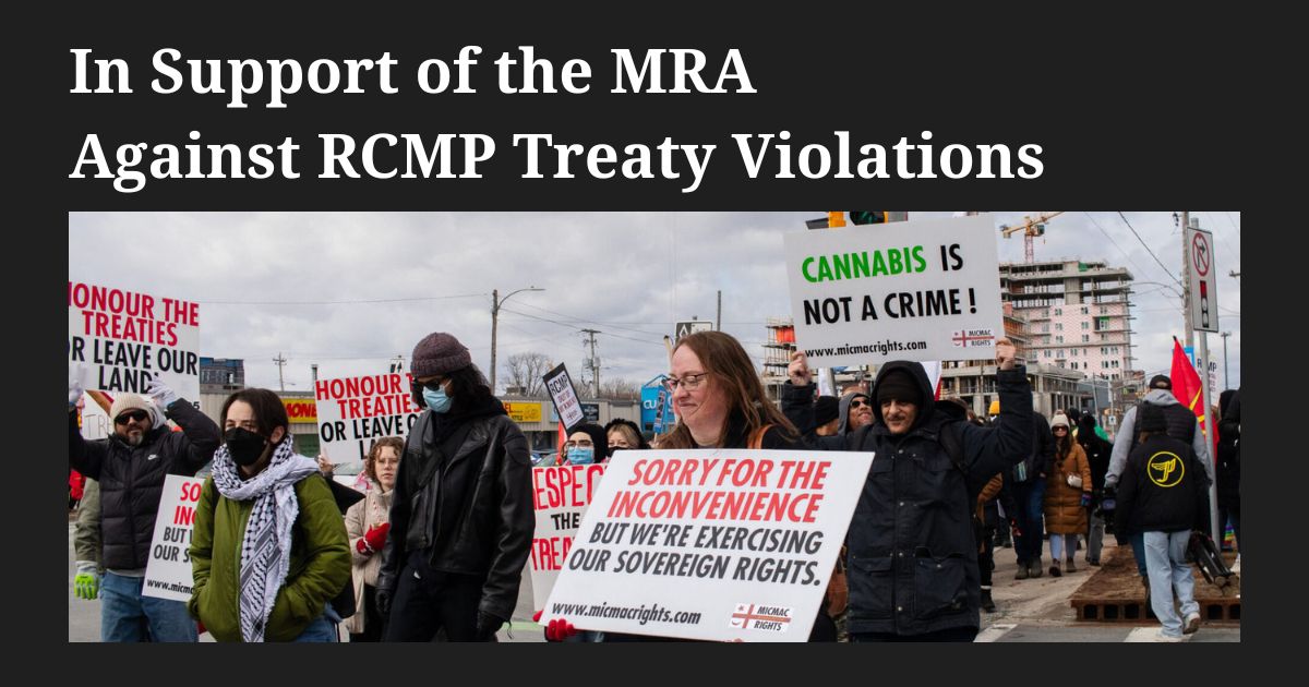 In Support of the Micmac Rights Association Against Royal Canadian Mounted Police Treaty Violations